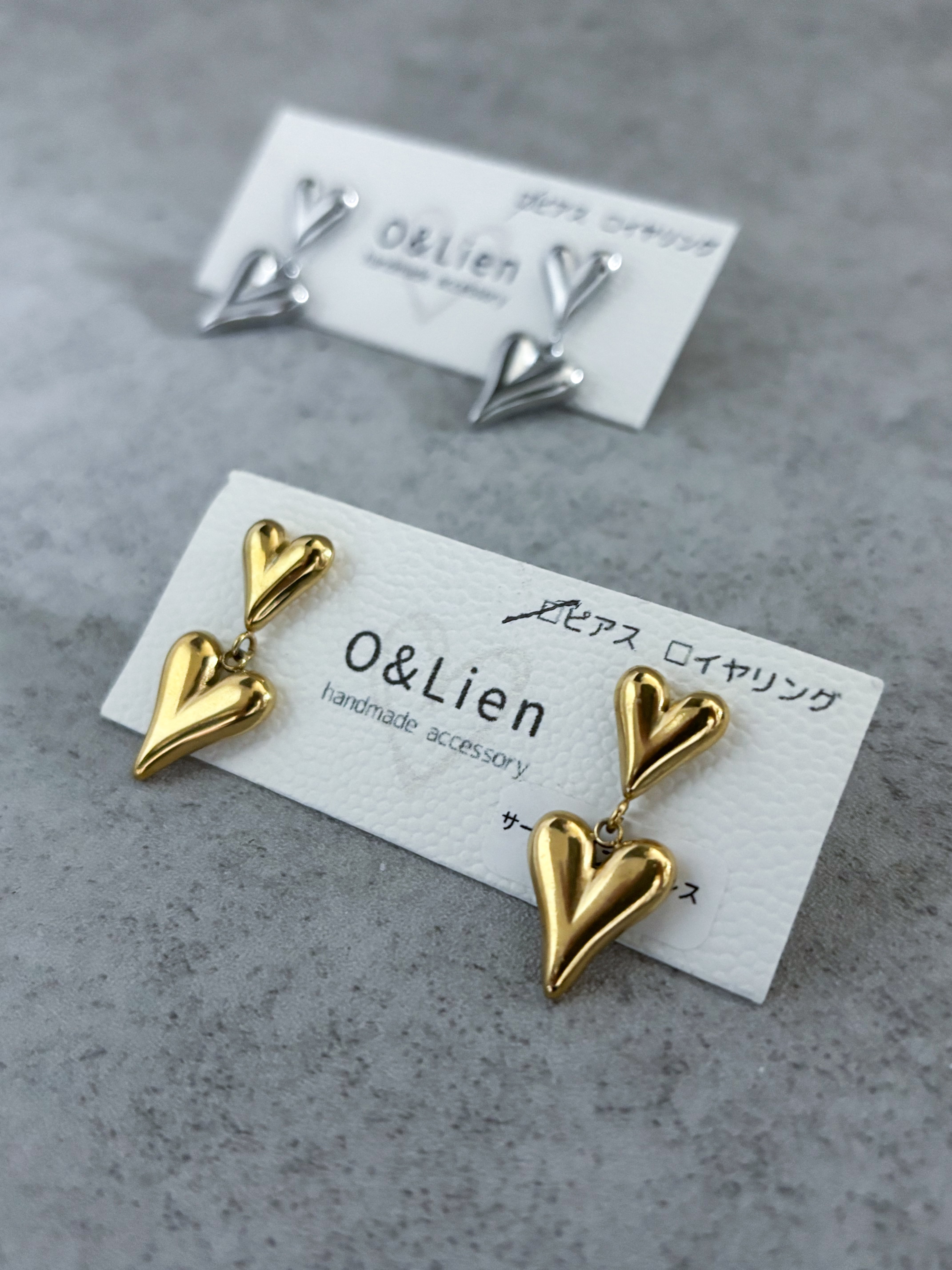 大きさの違うダブルのハートが可愛いピアス/イヤリング。