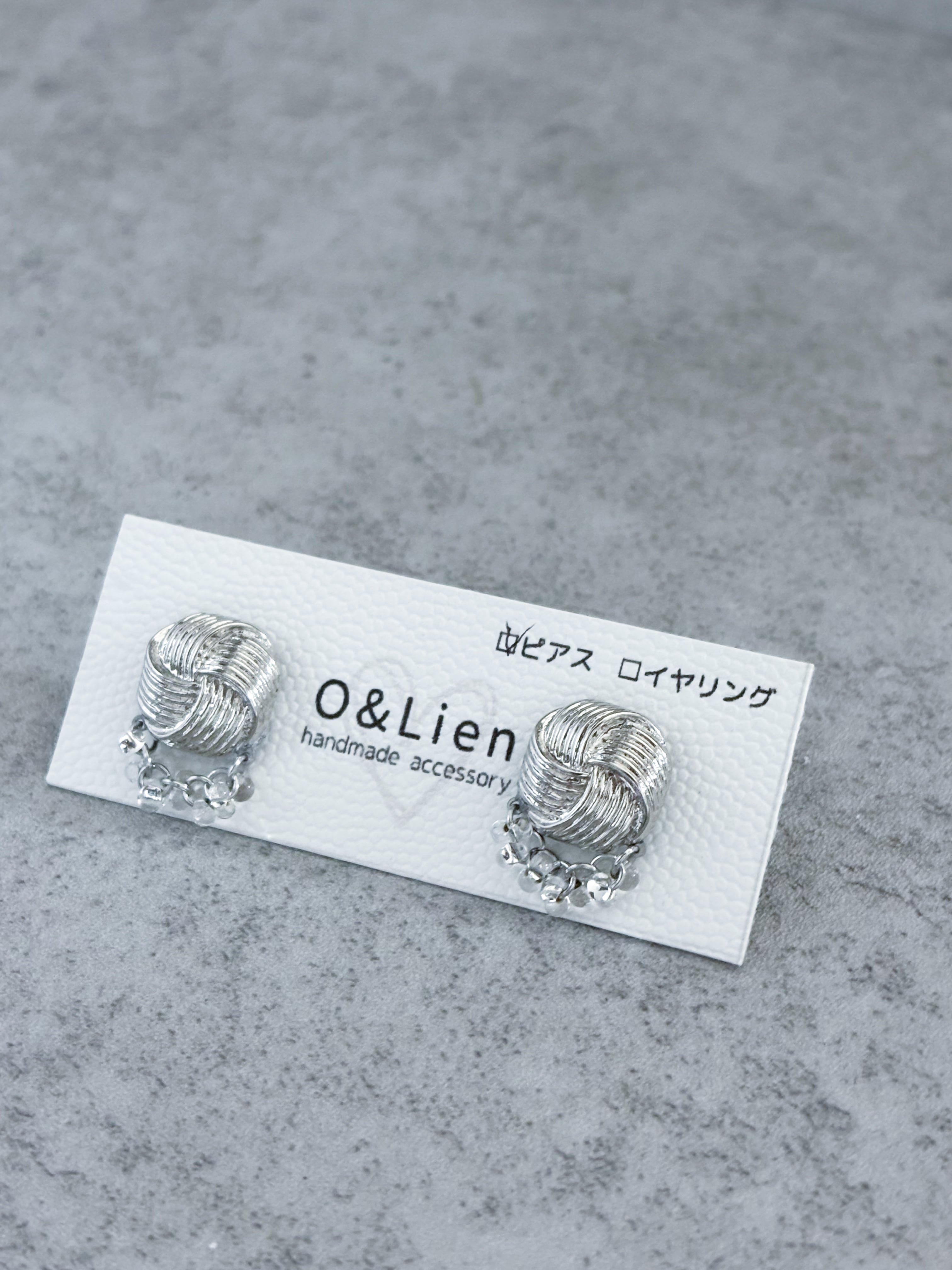 ピアスはサージカルステンレス、イヤリングはニッケルフリーのネジバネ式か蝶バネ式からお選びいただけます。