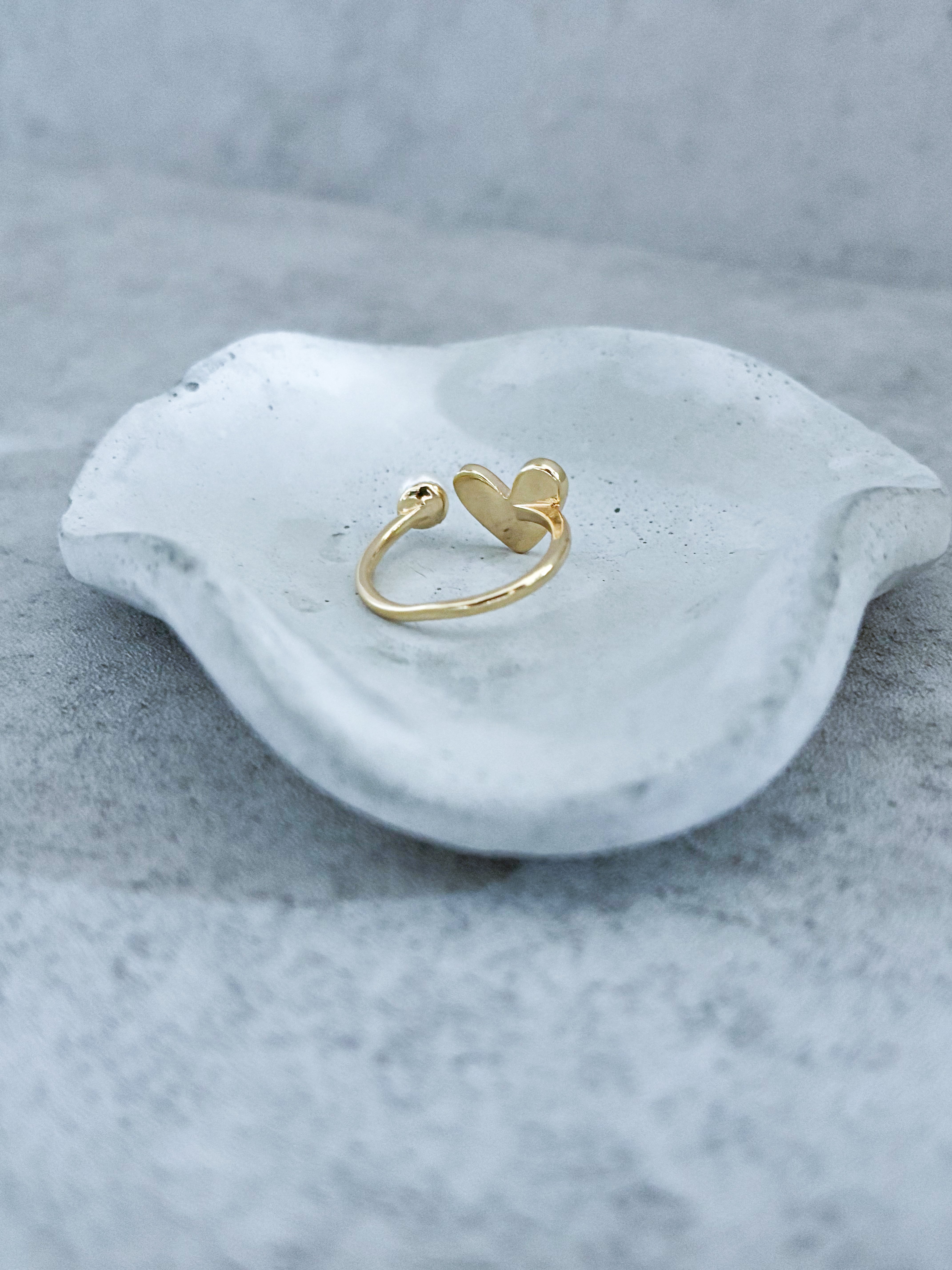 ハートの形の天然シェルと淡水パールのリング。